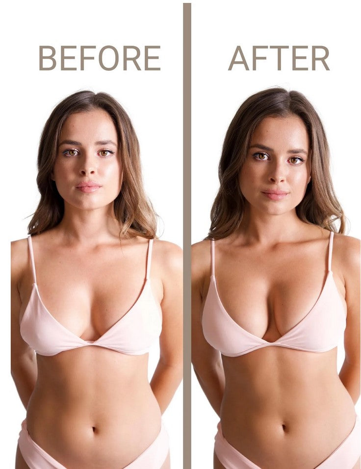 • Umiddelbart løft og volum: GlowCups gir brystene en naturlig løft som får dem til å se fyldigere og fastere ut, med en effekt på opptil 2 cupstørrelser.